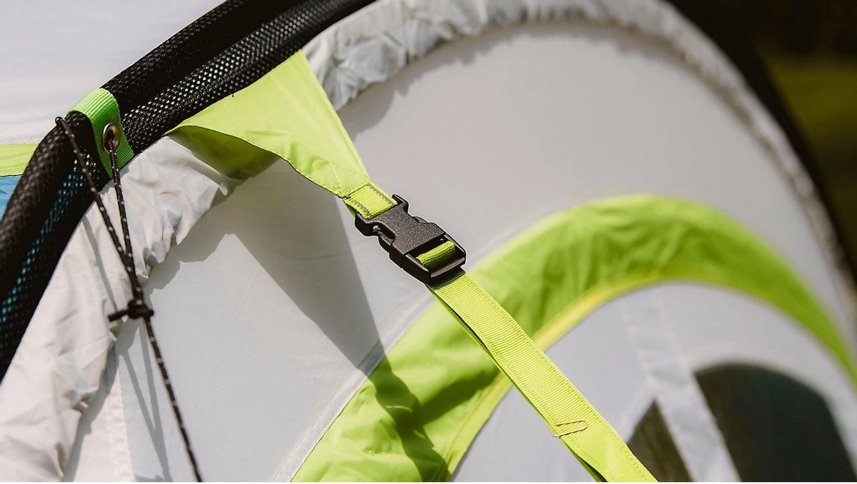 Deze tentluifel is voorzien van een extra stevige rits. Daarmee bevestig je de luifel in een handomdraai aan je tent.