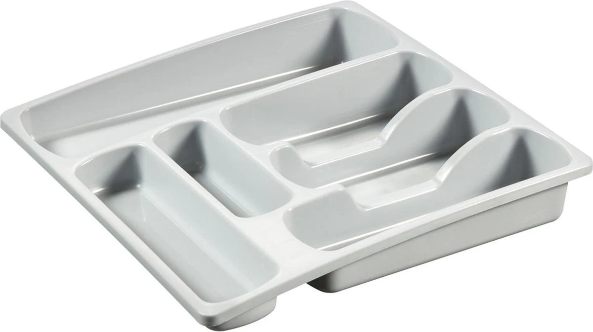 Een stevige 6-vaks bestekbak. Ideaal om bestek geordend op te bergen. Deze bestekbak bestaat uit 4 grote vakken en 2 kleine vakken. Deze vakken zijn extra breed.