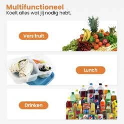 Door het handige handvat en schouderband is de koeltas makkelijk mee te nemen. De rechthoekige vorm zorgt er ook voor dat je de koeltas – leeg of vol – makkelijk in je bagagekoffer kunt meenemen.