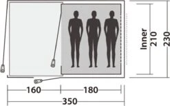 - Afmetingen: 350 x 230 x 170 cm (L x B x H)