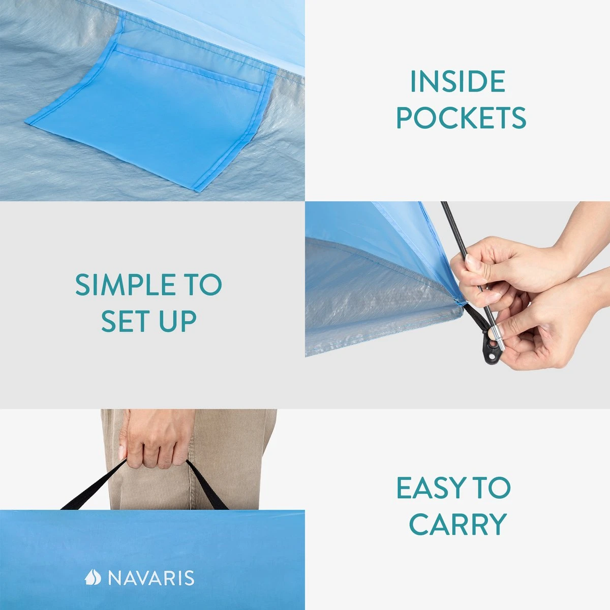 Deze pop-up tent van Navaris is een echte must-have voor de zomer: hij biedt een droge ondergrond en bescherming tegen zon en wind op het strand, op de camping of in het park.