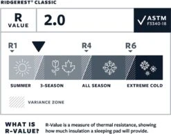 | Verpakkingsinhoud | Vrijwel onverwoestbaar, de RidgeRest® Classic-slaapmat is een revival van het origineel. Door gebruik te maken van het meest duurzame schuim, gaat dit matras zeker vele jaren mee en levert hij uitzonderlijke waarde aan kampeerders die op zoek zijn naar basiscomfort. |